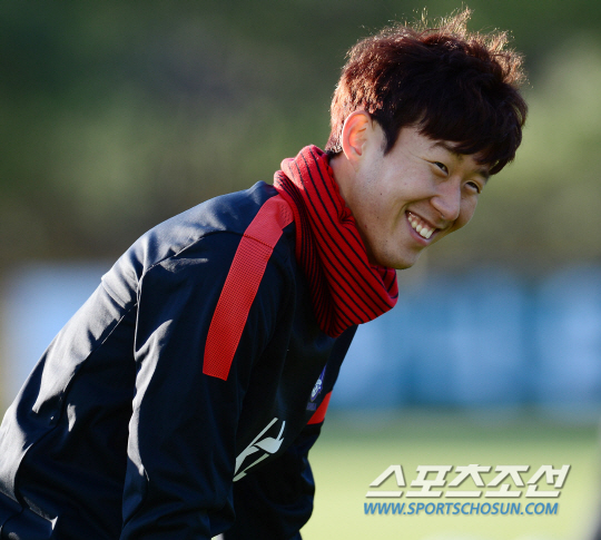 축구대표팀이 12일 오후 경기도 파주 축구트레이닝센터에서 소집 후 첫 훈련을 했다. 손흥민이 밝은 표정으로 훈련을 하고 있다. 이날 소집된 홍명보호는 오는 15일 서울 상암에서 스위스와 평가전을 치른 후 19일 아랍에미리트 두바이에서 러시아와 원정 평가전을 치를 예정이다. 파주=정재근기자 cjg@sportschosun.com/2013.11.12/