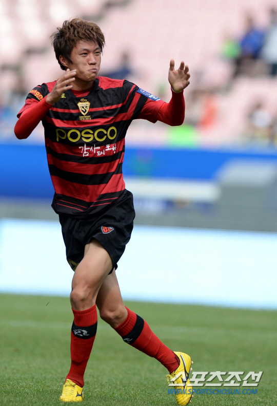 황선홍 포항 감독은 최근 절정의 컨디션을 보이고 있는 김승대를 최전방 공격수로 '깜짝' 기용했다. 적중했다. 김승대는 전반 19분 고무열의 로빙 패스를 오른발 인사이드 슈팅으로 마무리하며 포항에 첫 골을 선사했다. 전북의 수비수 정인환의 볼처리 미숙으로 인해 흐른 볼을 신인답지 않게 침착하게 차 넣었다.