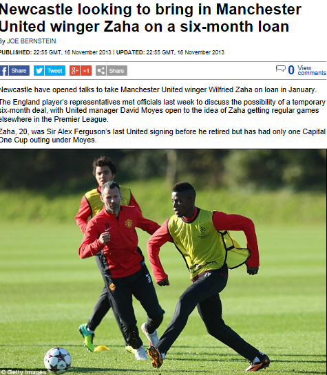 윌프레드 자하(맨유)가 뉴캐슬로 임대를 떠날것으로 보인다.