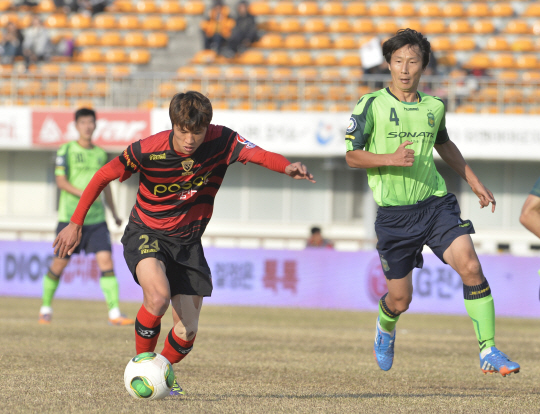최 감독의 우려는 현실이 됐다. 전반 19분 포항 고무열의 로빙 패스에 정인환이 뒷걸음질 치다 넘어졌고, 그대로 김승대의 선제골로 연결됐다. 전북의 중앙 수비가 혼란에 빠졌고, 포항은 이 틈을 놓치지 않았다. 불과 2분 뒤 김승대의 패스를 노병준이 왼발로 마무리 했다. 정인환과 김기희가 페널티박스 안쪽에 모두 자리하고 있었지만 공간을 파고 들던 노병준을 놓쳤다. 황 감독은 "추가골을 얻은 뒤 '됐다'는 생각을 했다. 전북전 승리를 위해 원했던 장면이 그대로 나왔다"고 미소를 머금었다.