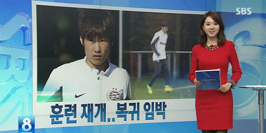 특히 김민지 아나운서는 "발등을 다쳐 그라운드에 나서지 못했던 네덜란드 에인트호번의 박지성 선수가 50일 만에 훈련을 재개했습니다. 복귀가 임박했습니다"라고 박지성의 소식을 직접 전하며 입가에 수줍은 미소를 띠어 시청자들의 눈길을 끌었다.