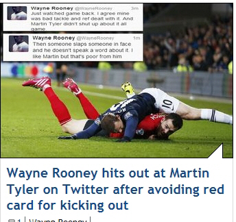 웨인 루니(맨유)가 카디프시티전 태클에 대한 스포츠 중계진을 향해 공개적으로 불만을 드러냈다.