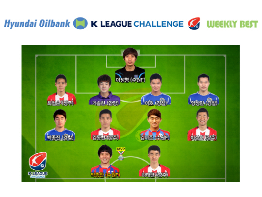 한편, 챌린지에서는 박종찬(수원FC)이 34라운드 MVP에 올랐다. 박종찬은 24일 부천FC와의 홈경기에서 후반 13분 역전골을 터트리며 팀의 2대1 승리를 견인했다. 베스트 공격수에는 박종찬 외에 하태균(상주)이 선정됐다. 미드필더에는 이상호 김동찬(이상 상주) 김서준(수원FC) 박종진(경찰)이 뽑힌 가운데 수비수에는 양상민 이 호(이상 경찰) 가솔현(안양) 최철순(상주)이 이름을 올렸다. 최고 골키퍼 자리는 이정형(수원FC)이 차지했다. 김성원 기자 newsme@sportschosun.com