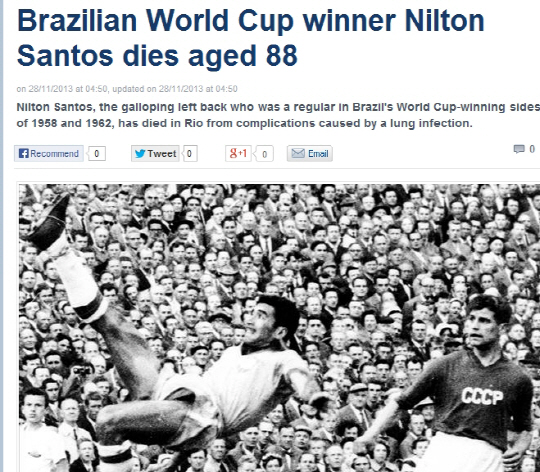 브라질의 '전설의 왼쪽 풀백' 니우퉁 산투스가 88세를 일기로 사망했다.
