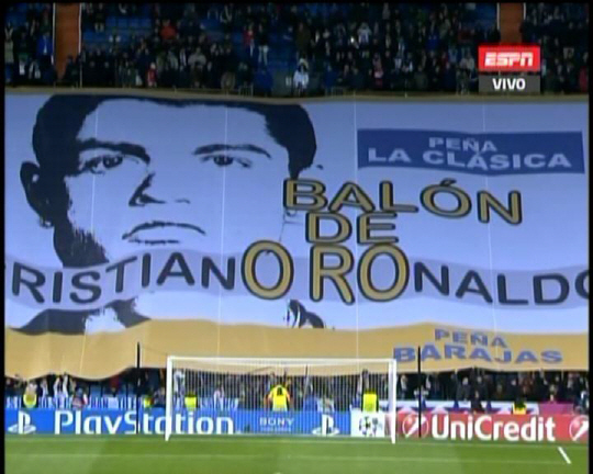 레알 마드리드와 호날두의 팬들은 이날 앞서 열린 터키 갈라타사라이와의 2013~2014시즌 유럽 챔피언스리그 B조 5차전(4대1 레알 마드리드 승)에서 호날두의 2013 FIFA 발롱도르 수상을 위한 특별한 응원을 펼쳤다.