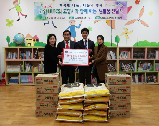 또 고양시사회복지협의회가 2011년부터 시행해온 '고양시민 복지나눔 1촌맺기 사업'에 따라 지역 저소득층 아동들의 건강한 인성 및 신체발달을 위해 설립된 고양시드림스타트센터에 지원을 하게 됐다. 고양 관계자는 "지역 밀착형 활동으로 시민들로부터 사랑을 받고, 사회적 가치를 실행에 옮기고자 캠페인을 진행했다. 수입원의 일부를 자발적으로 구단이 고양시 소외계층에 기부하면서 나눔 문화의 선순환을 유도할 것"이라고 밝혔다.