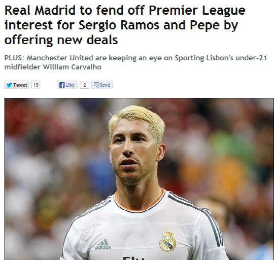첼시와 맨시티가 레알 마드리드의 수비수 세르히오 라모스에게 러브콜을 보내고 있다.