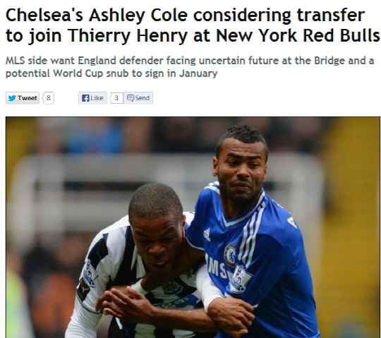 1일(한국시각) 영국 일간지 선데이피플은 콜이 티에리 앙리가 속해 있는 미국메이저리그사커 뉴욕 레드불스의 러브콜을 받고 있다고 보도했다. 콜은 올여름 첼시와의 계약이 만료된다. 그러나 첼시로부터 재계약을 제시받지 못할 것으로 보인다. 콜은 최근 부진한 경기력으로 조제 무리뉴 감독의 외면을 받고 있다. 불화설까지 나오고 있는 상황이다. 콜은 주급 6만파운드에 출장 보너스를 받는다. 노장 수비수이기에 웬만한 클럽에서 감당하기 어려운 금액이다.