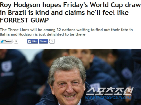 호지슨 감독은 3일 영국 일간 데일리미러와의 인터뷰에서 자신을 초콜릿 상자에서 초콜릿을 고르는 '포레스트 검프'에 비유했다. "박스를 열고 우리가 고른 것이 무엇인지 보고, 맛보고, 소화시킬 것"이라고 했다. "많은 고찰과 전망이 있었지만, 나는 크게 신경쓰지 않는다. 중요한 것은 우리가 거기에 간다는 것이다. 부디 추첨 결과가 우리에게 친절하길 바란다"는 소망을 밝혔다. 스포츠2팀