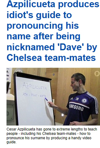 아스필리쿠에타는 올해 초 텔래그라프지와의 인터뷰에서 동료들이 자신의 이름을 어려워하며 '데이브'라고 부르는 것과 관련, "사실 세자르라는 이름을 어렵지 않다. 아스필리쿠에타라는 성이 어려워서 그런 것같다"고 분석했다. 답답한 마음에 발음 동영상 가이드를 직접 찍어올렸다. 자구책을 마련했다.