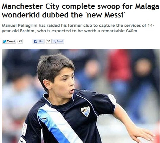 맨시티가 마침내 메시를 손에 넣었다. 리오넬 메시가 아닌 14세의 '뉴 메시' 브라함 디아즈다.