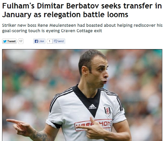 4일(한국시각) 영국 일간지 데일리미러는 베르바토프가 1월이적시장에서 다른 팀으로 이적을 원하고 있다고 보도했다. 새롭게 부임한 르네 뮬렌스틴 감독에게는 치명적인 소식이다. 베르바토프가 팀을 떠나고 싶어하는 이유는 간단하다. 팀 성적이 엉망이기 때문이다. 5연패의 수렁에 빠지며 18위까지 추락했다. 특히 공격진이 최악의 모습을 보이고 있다. 덩달아 베르바토프의 득점력도 떨어졌다. 올시즌 단 한골만을 넣었다.