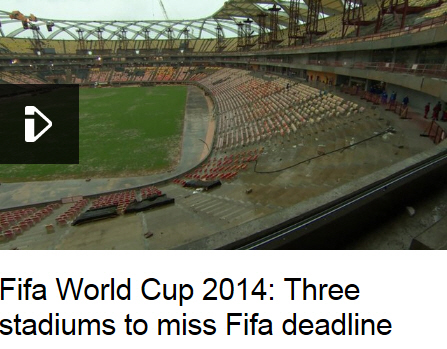 FIFA는 4일(한국시각) 브라질 코스타도 사우이페에서 월드컵 조직위원회 회의를 열고 브라질월드컵 준비 상황을 전했다. 영국의 BBC스포츠에 따르면 FIFA는 '스타디움 공사 완료의 마감일(12월 말일)까지 3개의 스타디움이 모두 완공되지 않을 것이다'라고 밝혔다.