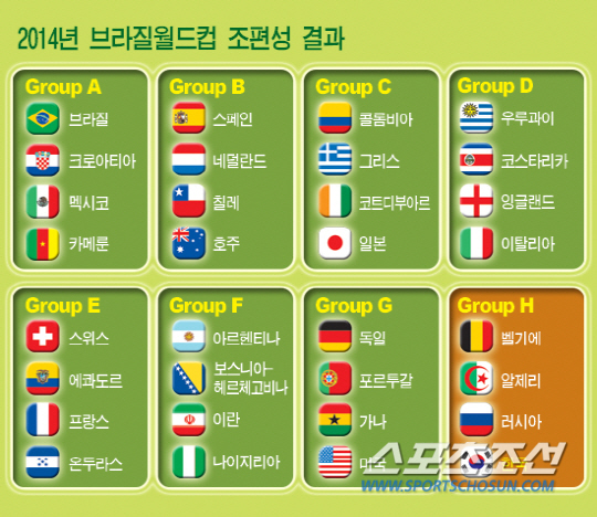 '죽음의 조'는 피했다. 이쯤되면 '최상의 조'다. 홍 감독의 바람대로 됐다. 홍 감독은 이동거리, 현지 여건 등을 고려, 유럽 두 팀과 함께 했으면 하는 희망을 피력했다. 개최 대륙인 남미를 피했다. 유럽 두 팀과 함께한다. 유럽 중에서도 절대 강자가 아니다. 충분히 해볼만 한 상대다. 알제리는 복병이지만 아프리카에서도 최약체로 꼽힌다.