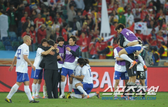 한국의 16강 진출 시나리오도 궤도에 올랐다. 최근 두 차례 월드컵에서 모두 1승1무1패를 기록했다. 희비는 엇갈렸다. 2006년 독일월드컵은 진한 아쉬움이 남았다. 1차전에서 토고를 2대1로 꺾고 사상 첫 월드컵 원정 승리를 거뒀다. 또 박지성의 동점골을 앞세워 최강 프랑스와 1대1로 비기며 16강 진출의 환상에 젖었다. 그러나 스위스와의 조별예선 마지막 경기에서 0대2로 패하며 날개를 접고 말았다.