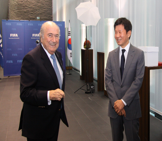 지난 1월 제52대 대한축구협회장에 오른 그는 '국제 축구사회에서의 영향력 제고 및 국제대회 유치'를 목표로 5월 월드컵 유치전에 뛰어들었다. 2017년이면 국제 대회를 개최한 지 10년이 되는 해다. 한국 축구에 새로운 모멘텀이 필요했다. 정 회장은 월드컵을 성공적으로 개최한 국가로 대회 운영 능력, 인프라 등을 적극적으로 재활용할 수 있을 뿐 아니라 축구를 지지하는 팬들의 열망을 지구촌 가족에게 다시 소개할 수 있다고 판단했다. 또 대회 유치를 통해 국제 축구 발전에 기여할 수 있고, 이웃인 아시아 국가에는 새로운 동기 부여가 될 수 있다. 창립 80주년을 맞은 축구협회는 내부적으로 진정한 축구 강국으로 거듭나기 위한 통로를 마련할 수 있다.