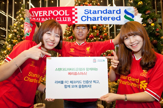 잉글랜드 프리미어리그(EPL) 리버풀FC 메인 스폰서이자 K-리그 유소년발전프로그램 후원사인 스탠다드차타드은행이 리버풀FC 축구팬들을 대상으로 21일 열리는 리버풀과 카디프시티전을 단체로 모여 응원하는 '메리콥스마스(Merry Kop's Mas)' 파티를 진행한다.