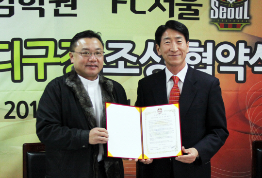 FC서울이 학교법인 충암학원과 지난 10일 충암중학교 도서관에서 충암초중 인조잔디구장 조성 협약식을 가졌다.