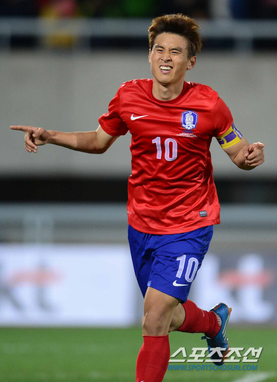 홍명보 감독이 이끄는 축구대표팀이 15일 천안종합운동장에서 아프리카의 강호 말리와 친선경기를 했다. 구자철이 패널티킥을 성공시키며 1-1 동점을 만든 후 환호하고 있다. 천안=정재근기자 cjg@sportschosun.com