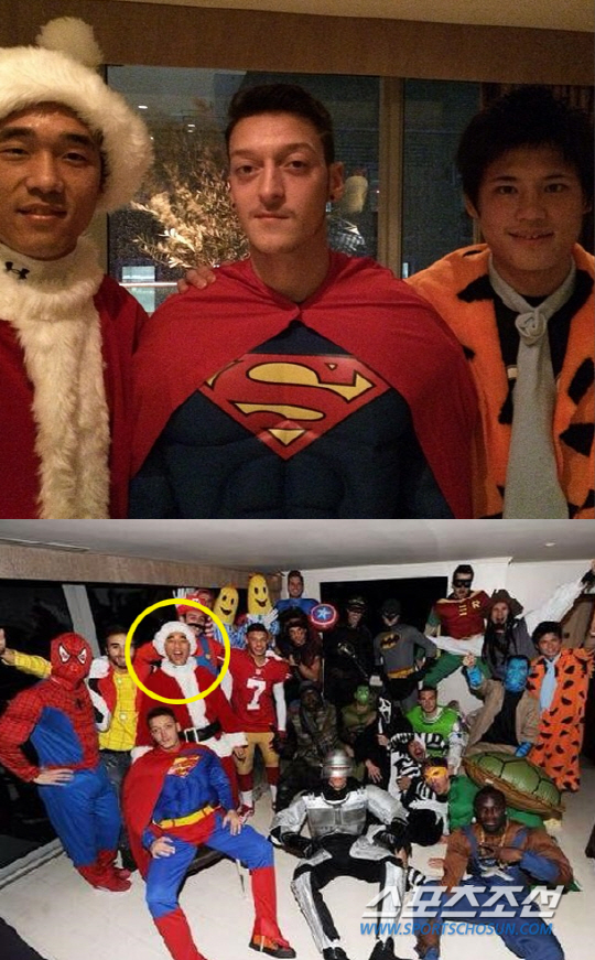 슈퍼맨 복장을 한 메수트 외질은 자신의 SNS에 박주영과 '원시인' 플린트스톤으로 분한 일본 출신 미야이치 료와 다정한 포즈를 취해 한국팬들의 시선을 당겼다.