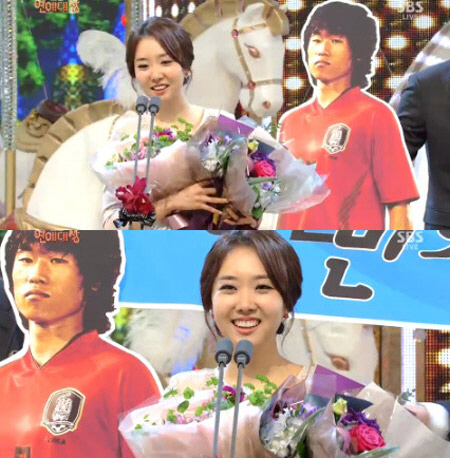 또한 마지막으로 박지성을 향한 영상 메시지를 보내라는 말에 "오빠 안녕, 올해 많은 일이 있었는데 이렇게 한 해를 마무리 하면서 상까지 받게 돼 기분이 좋다"면서 "매일매일 좋은 기억으로 함께 하면서 새로운 기억을 만들어 가는 것이 가장 큰 상이라고 생각한다"고 수줍게 말했다.