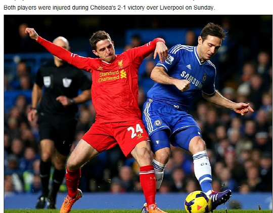 2일(이하 한국시각) 영국 일간지 데일리메일은 '램파드와 이바노비치가 지난 30일 리버풀전(2대1 승)에서 부상을 했다'고 전했다. 둘은 이날 사우스햄턴전(3대0 승)에 나란히 결장했다.