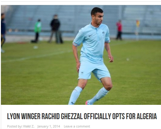 프랑스 20세 이하(U-20) 대표팀에서 활약한 라시드 게잘(22·올림피크 리옹)이 알제리 국적을 선택했다.
