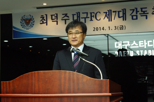 최 감독은 3일 대구스타디움에서 열린 취임식에서 "좋은 성적과 결과를 만들어야 팬들에게 사랑받는 팀이 될 수 있다"며 "대구가 끈질기고 강한 팀으로 바뀔 수 있게 노력하겠다"고 밝혔다. 최 감독은 중앙대를 졸업했다. 1984년 한일은행, 1985년 포항에서 뛰었다. 1986년 독일 진출에 실패했다. 이듬해 일본으로 진출해 실업팀 마쓰시타전기에서 뛰었다. 하지만 무릎을 다치며 현역 선수 생활을 접었다.