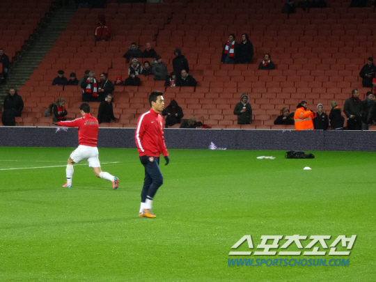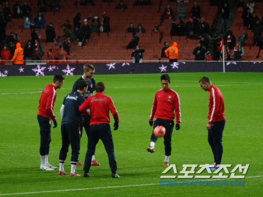 ◇박주영이 5일(한국시각) 영국 런던 에미리츠 스타디움에서 열린 토트넘과의 2013~2014시즌 FA컵 3라운드 시작 전 몸을 풀고 있다. 런던=김장한 통신원 janghanbutter@gmail.com