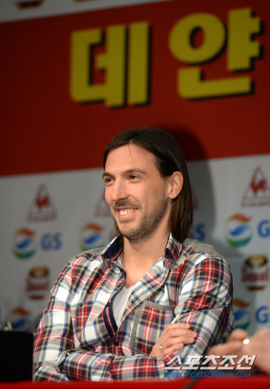 그러나 데얀은 K-리그를 떠난다. 최근 중국 장쑨 순텐으로 이적했다. 한국 생활을 정리하기 위해 방한한 그는 6일 서울월드컵경기장에서 고별 기자회견을 가졌다.