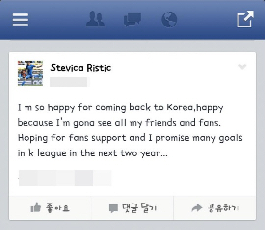 스스로 "한국은 제2의 고향"이라 칭할 만큼 뜨거운 6시즌을 보낸 한국에 대한 기억이 남다를 수밖에 없다. 특히 마지막 3시즌을 보낸 수원과 팬들에 대한 기억은 각별하다. 지난해 7월 대전과의 고별전에서 1골1도움을 기록하며 승리를 이끌었다. 작정한 듯 화끈한 상의탈의 세리머니를 선보인 후 심판에게 고개 숙였고, 교체 후 관중석으로 뛰어올라 훈훈한 석별의 정을 나눴다. 수원과의 계약 만료 후 한국이 아닌 일본행을 택했다. 수원을 적으로 만나는 일은 당장 할 수 없다는 뜻이었다. "1~2년의 시간이 지나면 어떻게 될 지 모르지만 지금 당장은 할 수 없는 일이다"라는 말로 수원 팬들에 대한 각별한 애정과 예를 표했다. 작별인사를 하고 일본 J-리그 쇼난 벨마레로 표표히 떠난 그가 6개월만에 돌아왔다. 스테보에겐 J-리그보다 K-리그가 맞는 옷이었다. 쇼난 벨마레에선 8경기(선발 2회, 교체 6회) 1골에 그쳤다.