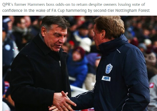 7일(한국시각) 영국 일간지 미러는 '웨스트햄 구단주가 샘 앨러다이스 감독 경질을 고려하고 있고, 챔피언십(2부 리그) 퀸즈파크레인저스(QPR)의 해리 레드냅 감독을 후임으로 낙점했다'고 보도했다.