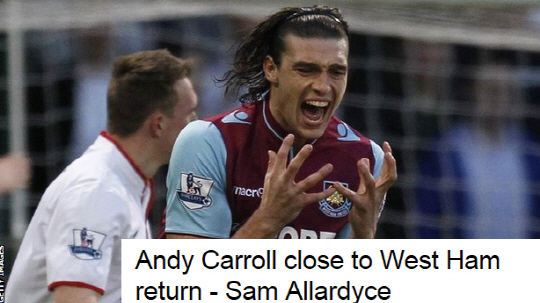 잉글랜드 프리미어리그(EPL) 19위에 그치며 강등 위기에 처한 웨스트햄은 캐롤의 복귀로 한 숨을 돌릴 수 있게 됐다. 지난 시즌 웨스트햄에서 임대 생활을 보내며 7골(24경기)을 넣은 캐롤의 공격력에 기대를 걸고 있다. BBC스포츠는 캐롤이 12일에 열리는 카디프시티 원정 경기에 출전할 것으로 전망했다.