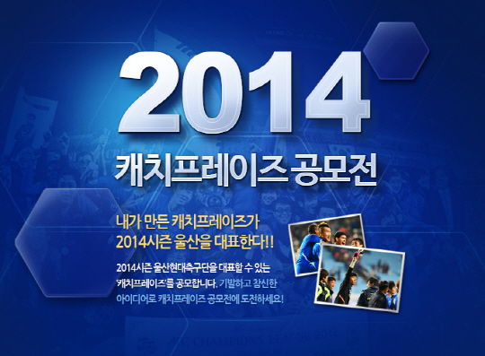 올시즌도 팬들의 참신한 아이디어를 기다리고 있다. 구단은 10일 오후부터 구단 홈페이지(http://uhfc.tv) 이벤트 게시판을 통해 '2014 캐치프레이즈 공모전'을 진행한다.