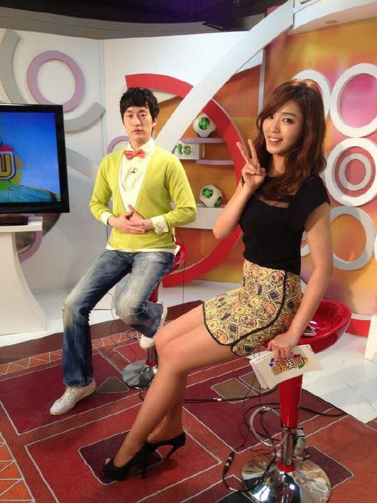 사진 속 정 아나운서는 박찬하 해설위원과 함께 카메라를 응시하고 있다. 특히 정 아나운서의 초미니로 드러난 매끈한 각선미와 S라인 몸매가 시선을 모은다.
