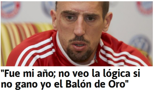 스페인 일간 '아스'에 따르면 리베리는 현지에서 가진 프랑스 RTL 방송과의 인터뷰에서 "2013년은 내게 최고의 해였다. 나의 해다. 내가 발롱도르를 받지 못한다면 이치에 맞지 않는다"고 자신감을 높였다.