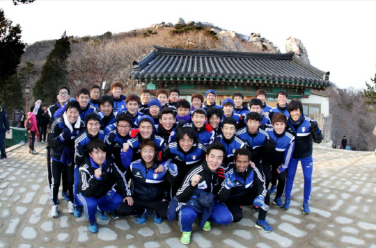 11일이었다. 경남 남해 전지훈련 중인 수원은 체력 훈련 겸 팀워크를 다지기 위해 등산에 나서기로 했다. 근처 명소인 금산에 올랐다. 한려해상국립공원에 속해있는 금산은 705m 높이다. 보리암까지 가기로 했다. 보리암은 수려한 경관으로 남해를 대표하는 관광지다. 보리암까지 등산코스는 2.5㎞로 그리 길지는 않다. 다만 경사가 가파르다. 25~30도 정도다. 일반인들 걸음으로는 1시간 30분 정도 걸린다.