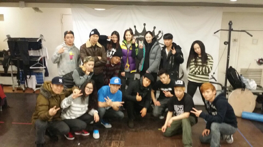 도로공사 미녀 듀오 곽유화와 고예림이 T.I.P Crew와 연습한 뒤 기념촬영을 했다. 사진제공=KOVO