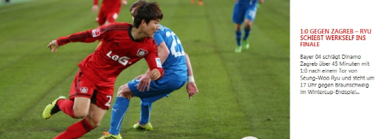 류승우는 19일(이하 한국시각) 독일 브란덴부르크에서 열린 윈터컵 레버쿠젠과 디나모 자그레브(크로아티아)의 친선전에서 33분 천금같은 결승골을 뽑아냈다. 팀의 1대0 승리를 이끌었다.