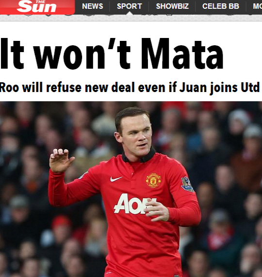 웨인 루니(28·맨유)가 후안 마타(25·첼시) 영입 시 이적할 것이라는 의견이 제기됐다.