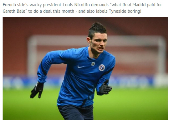 뉴캐슬이 몽펠리에 미드필더 레미 카베야 영입에 난항을 겪고 있다. 23일(한국시각) 영국 일간지 데일리미러는 몽펠리에가 카베야 몸값으로 천문학적인 금액을 원하고 있다고 보도했다. 루이 니콜린 몽펠리에 회장은 "1월이적시장에서 카바예를 데려가려면 레알 마드리드가 가레스 베일을 데려올때 썼던 금액을 내야한다"고 으름장을 놨다. 레알 마드리드는 베일 영입을 위해 세계 최고의 이적료인 8600만파운드를 지불했다. 니콜린 회장은 이어 "개인적으로 나라면 뉴캐슬로 가지 않을 것이다. 뉴캐슬은 지루한 동네다"라며 "레미는 내가 좋아하는 선수다. 그는 뉴캐슬 보다 더 큰 클럽에 갈 자격이 있다"며 뉴캐슬을 공격하기도 했다.