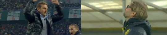 마르쿠스 바인지를 아우크스부르크 감독은 두 팔을 번쩍 치켜올렸다. 위르겐 클롭 도르트문트 감독은 하늘을 올려다봤다.