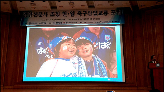 반포레 고후의 우미노 가즈유키 회장이 강단에 섰다. 극심한 재정난을 극복하고 12년 연속 흑자를 낸 경영 노하우가 스피커를 통해 흘러나왔다. 지난 23일 서울 한양대학교 백남학술정보관에서 열린 '경향신문 초청 한일 축구산업교류 포럼' 현장. J리그를 이끌어온 그들의 메시지는 K리그에 더없이 절절하게 다가왔다.