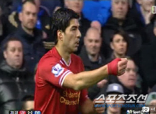 이날 경기중 수아레스가 마틴 앳킨슨 주심에게 동전을 보여주며 어필하는 장면이 목격됐다. 성난 에버턴 원정팬들이 코너킥을 준비중인 수아레스를 겨냥해 10여 개의 동전을 내던졌다. 브랜든 로저스 리버풀 감독은 "수아레스는 서포터에게 아무말도 하지 않았다"고 했다.