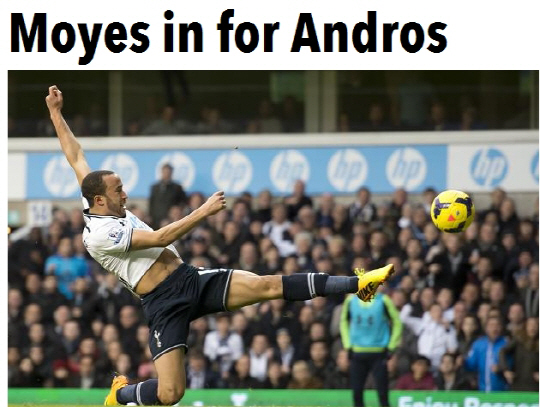 후안 마타를 데려온 데이비드 모예스 맨유 감독의 다음 타깃이 정해졌다. 주인공은 놀랍게도 안드로스 타운젠드(토트넘)다.