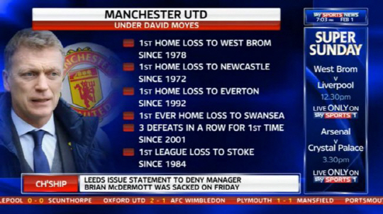 맨유의 3연패 역시 2001년 이후 처음 겪은 악몽이며 이 중 홈에서 당한 스완지시티 패배는 사상 처음 겪은 악몽이다.