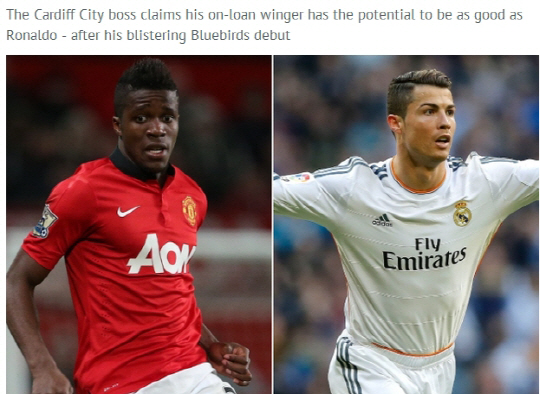 올레 군나르 솔샤르 카디프시티 감독이 윌프리드 자하의 재능을 극찬했다. 자하는 겨울이적시장에서 카디프시티로 임대됐다. 그는 2일(한국시각) 열린 노리치시티와의 경기에서 전반 39분 교체투입돼 팀의 2대1 승리를 도왔다. 자하는 경기 내내 맹활약을 펼치며 홈팬들의 큰 박수를 받았다. 솔샤르 감독도 즉각 칭찬 릴레이에 나섰다. 솔샤르 감독은 3일(한국시각) 영국 일간지 데일리미러를 통해 자하를 크리스티아누 호날두(레알 마드리드)에 비견했다. 그는 "자하는 볼을 갖고 플레이하는 것은 최고수준이다. 그는 매우 빠르고 호날두처럼 용맹하다"며 "그가 얼마나 더 성장하고 싶은지, 얼마나 축구를 사랑하는지만 잘 생각한다면, 호날두처럼 성장할 수 있다"고 했다.