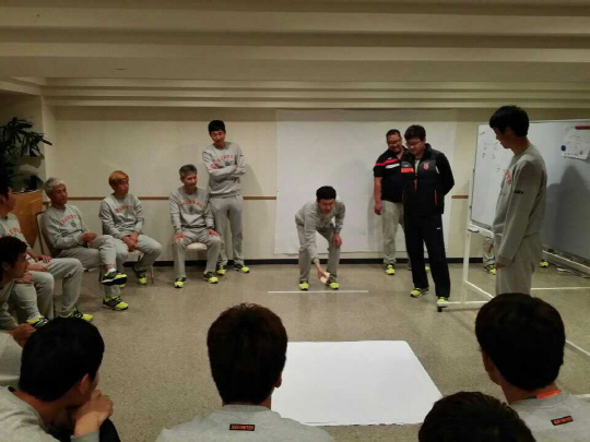 윷놀이 대결 결과 황도연 김봉래 김수범 허범산 좌준협 조준현 윤빛가람 진대성 등 신예로 이뤄진 조가 1등을 차지했다. 반면 노련미가 넘치는 오승범 최원권 강준우 김호준 등 고참 선수들은 꼴찌를 차지하며 고개를 떨궜다. 번외 경기도 흥미진진했다. 외국인 선수들끼리 한판 승부를 펼친 것. 스토키치와 알렉스가 한팀을 이뤘고 에스테벤과 드로겟이 손발을 맞췄다. 승자는 스토키치와 알렉스. 특히 1m96의 큰 키를 앞세운 알렉스의 타점 높은 손놀림에 선수들이 감탄을 마지 못했다는 후문.