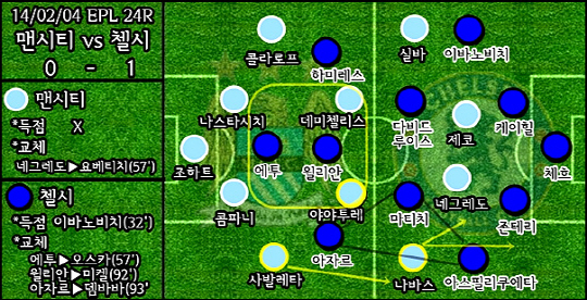 여기엔 페르난지뉴의 공백도 함께 작용했다. 야야 투레와 짝을 이룬 데미첼리스가 가장 아쉬웠던 건 안정감. 발이 빠른 자원이기는 하나, 지나치게 도전하는 형태의 수비 방법은 도박성이 짙었다. 첼시의 2선을 보다 높은 선에서 방해하려는 의도는 빈틈을 보이며 연쇄 반응을 일으켰다. 콤파니가 성실하게 전진하며 상당히 넓은 수비 범위를 메워갔으나, 이것이 무결점의 수비 커버를 보장할 순 없었다. 오버랩에 가담한 콜라로프나 사발레타가 완전히 수비 위치로 돌아오지 못했을 때, 위험 진영엔 나스타시치 홀로 남는 장면은 너무 위험했다. 이번 달 중순 치를 첼시-바르셀로나 2연전도 불안한 상황, 투레발(發) 도미노는 아직 진행형이다.