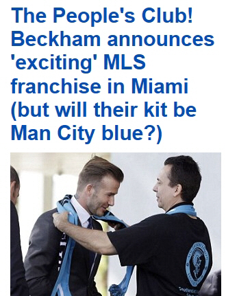 한편 창단 발표 직후 공개된 팀 머플러 색깔에 영국 축구팬들이 깜짝 놀랐다. 맨유의 레전드 미드필더 출신인 베컴의 구단 마이애미의 컬러가 '라이벌' 맨시티를 연상케하는 '맨시티블루'였던 것. 영국 대중 일간지 데일리메일도 이 부분에 주목했다. '베컴이 마이애미 창단을 발표했다. 그런데 창단팀 키트는 맨시티 블루?'라는 제목을 달았다.